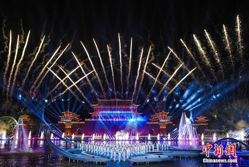 12月8日晚,电影节启动仪式在福州闽越水镇举行。当日,以“丝路通天下,光影耀福州”为主题的第八届丝绸之路国际电影节在福建福州开幕。 中新社发 闽分 摄