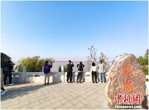 中新网开封10月14日电 (记者 张尼 吉翔 陈海峰 上官云 阚力)凭栏远眺,滔滔黄河水尽收眼底,两岸绿荫环抱,郁郁葱葱……在黑岗口黄河河势观测台上,展现在眼前的是一幅壮阔的自然画卷。
