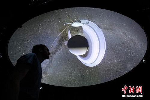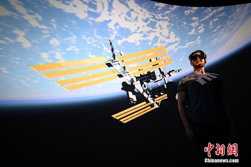 当地时间10月12日,瑞士洛桑附近的圣叙尔皮斯教堂, 洛桑联邦理工学院实验博物馆实验室内,研究人员使用虚拟现实软件VIRUP,虚拟出最详细的宇宙3D地图。图片来源:视觉中国