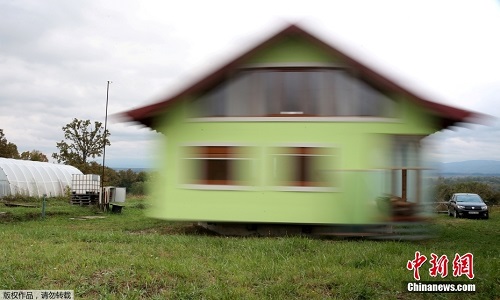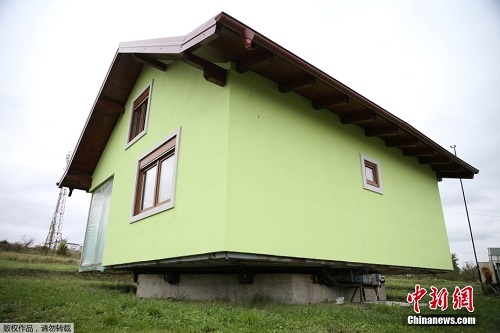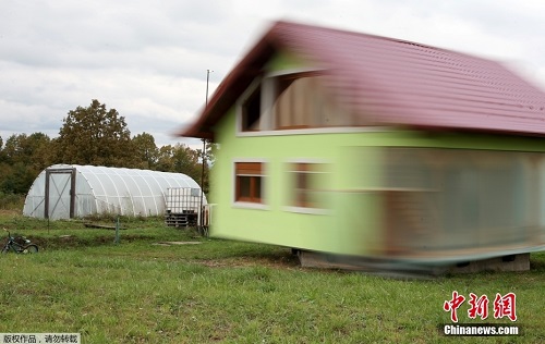 当地时间10月10日,波黑北部城镇斯尔巴克,这所“旋转房屋“由72岁的沃金·库西克设计建造,该房子可以360度旋转一圈,在室内可欣赏窗外任意角度的景色。