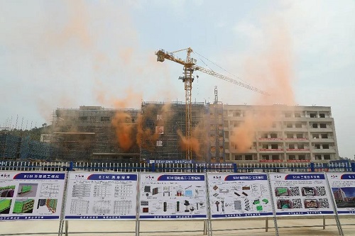 本次演练模拟电焊工在宁师二附小扩建项目现场综合楼3层作业时,不慎焊渣引燃方木起火,导致6名工人被困。