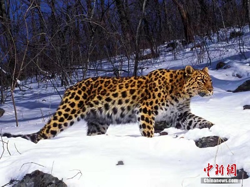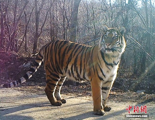 10月12日,东北虎豹国家公园正式设立。记者当天从东北虎豹国家公园管理局获悉,经过4年试点,监测到的野生东北虎、东北豹数量由试点之初的27只和42只分别增长至50只和60只,监测到新繁殖幼虎10只以上、幼豹7只以上。资料图为远红外相机拍摄的东北虎照片。 中新社发 东北虎豹国家公园管理局 供图