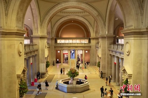 当地时间9月18日,美国纽约大都会艺术博物馆迎客大厅客流稀疏。该馆重新开放一年多以来,参观客流缓慢恢复。 中新社记者 廖攀 摄