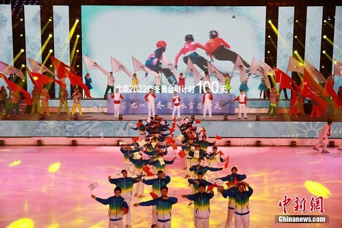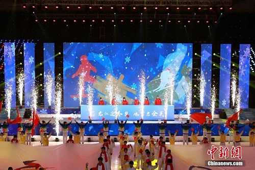 10月27日,黑龙江省迎北京2022年冬奥会倒计时100天冰雪系列活动在哈尔滨启动。活动以“龙江迎冬奥 冰雪惠全民”为主题,采取“线上+线下”模式,为北京冬奥会助力,为冬奥健儿加油鼓劲。中新社记者 李蒋铭 摄