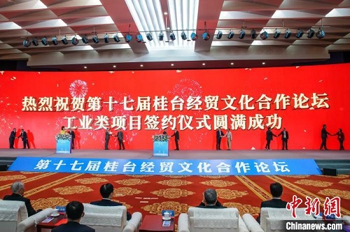 本届论坛由国务院台湾事务办公室和广西壮族自治区人民政府共同主办,两岸专家学者和企业界代表、广西有关部门和各市代表共约260人参加活动。论坛共签约投资项目14个,签约金额88.15亿元人民币,涵盖智能制造、电子科技、农产品加工、文旅观光、生态农业、医疗康养、化工等多种领域。(完)