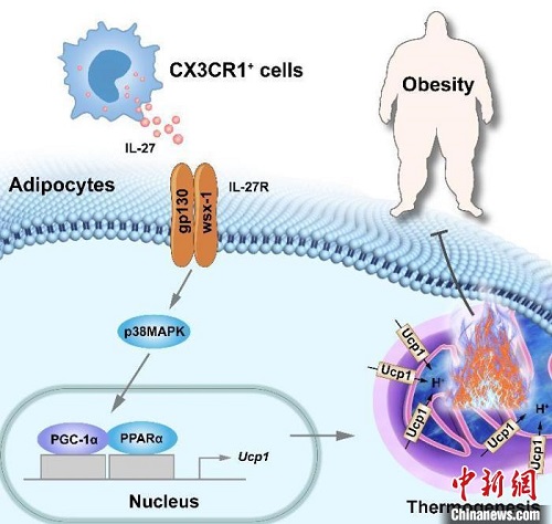 IL-27作用到脂肪细胞燃烧脂肪模式图 暨南大学供图