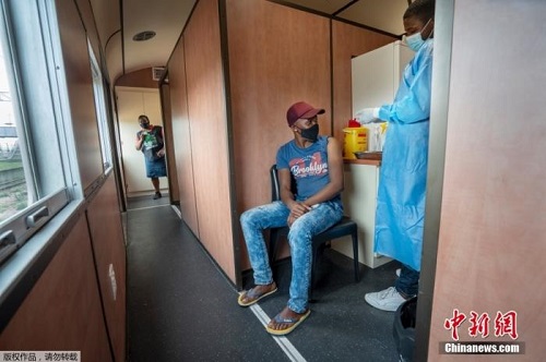 资料图:9月27日消息,近日,南非派遣一列载有新冠疫苗的火车前往其最贫穷的省份之一,向医疗设施紧张的地区运送疫苗。这列名为Transvaco的疫苗列车在东开普省进行为期三个月的旅行,并在七个车站每站停留两周,为人们接种疫苗。