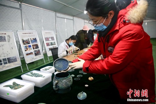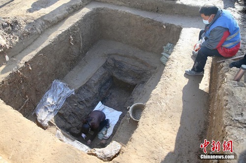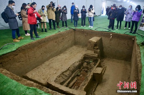 12月7日,北京琉璃河遗址考古发掘现场,考古现场负责人王晶向探访媒体记者介绍正在发掘的M1902号墓葬。据悉,此次考古共发掘西周早期墓葬5座、房址3座、疑似城外环壕1条,出土铜器、漆器、陶器、海贝、象牙器、丝织品标本等各类文物100余件。其中,曾出土堇鼎、伯矩鬲的西周墓葬的重启工作尤为引人注目。 中新社记者 易海菲 摄