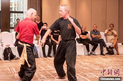 泉州南少林武术正在走向世界,图为外国友人在切磋五祖拳。 泉州市体育局 供图