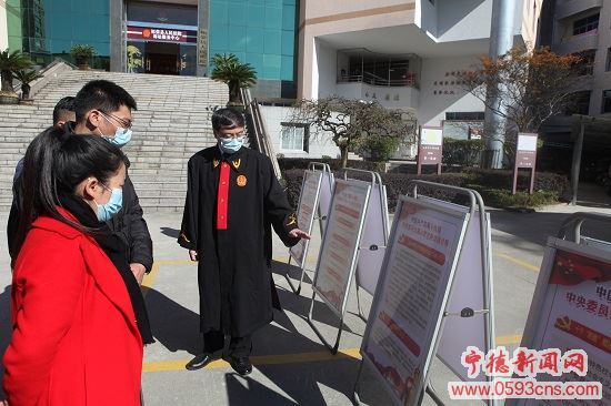 全体受邀人员在讲解员的带领下,参观柘荣法院、观看十九届六中全会宣传视频和宪法相关的科普视频。随后,受邀人员一同到操场集中观看全体员额法官宪法宣誓仪式,党组书记、院长李丽景领誓。宣誓结束后,柘荣法院员额法官向参观人员讲解十九届六中全会精神展板和宪法展板、宣讲十九届六中全会精神。(完)