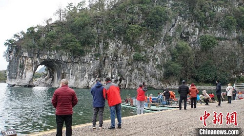 1月31日,游客前来欣赏象鼻山。 蒋丰慧 摄
