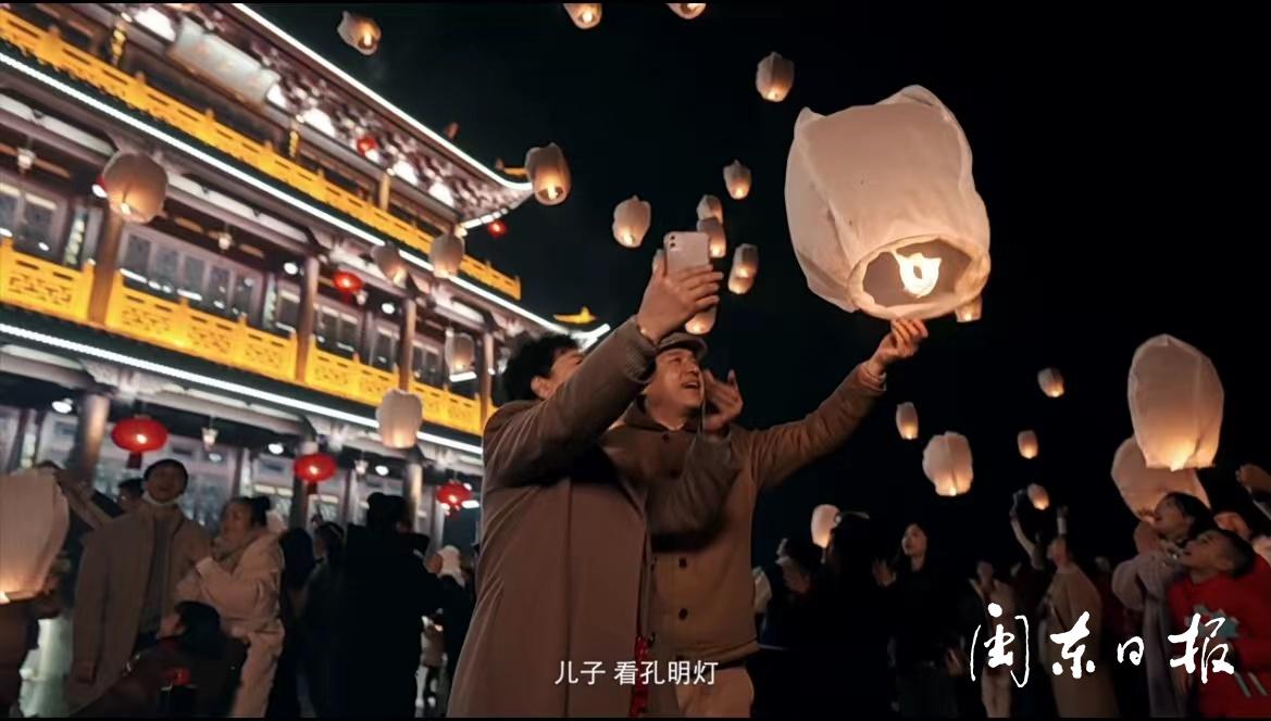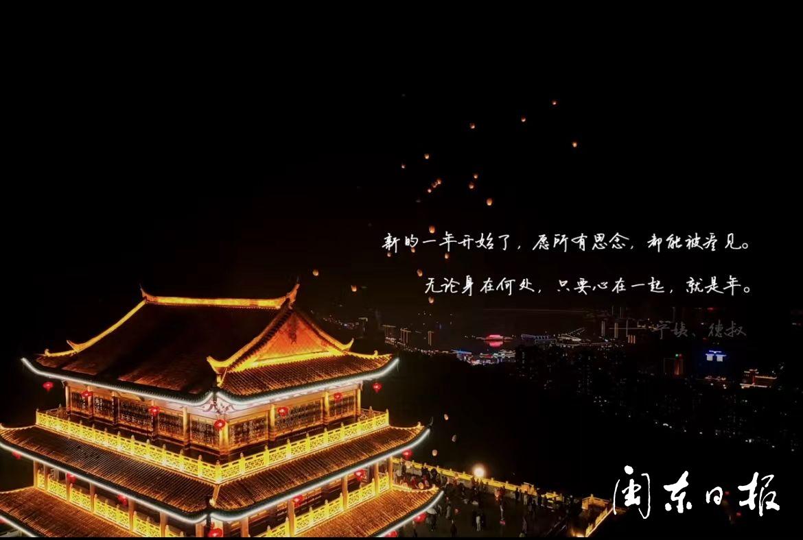 节目中,“宁姨”“德叔”来到宁德享受春节假期之旅时,特地前往市区靖海楼,和现场宁德人民一起放飞孔明灯祈福。在璀璨的夜景中,向全国人民展示了宁德这一“福”文化习俗。