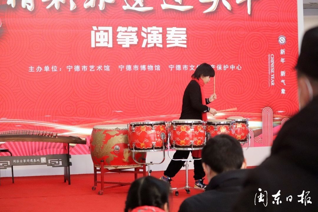 琴声悠扬,鼓乐声声,2月5日上午,一场精彩的闽筝演奏正在宁德市艺术馆一楼大厅上演。