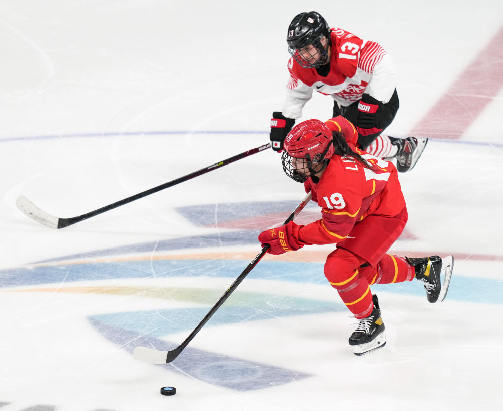 2月6日,中国队球员胡宝珍(左)在比赛中。 新华社记者 孟永民 摄