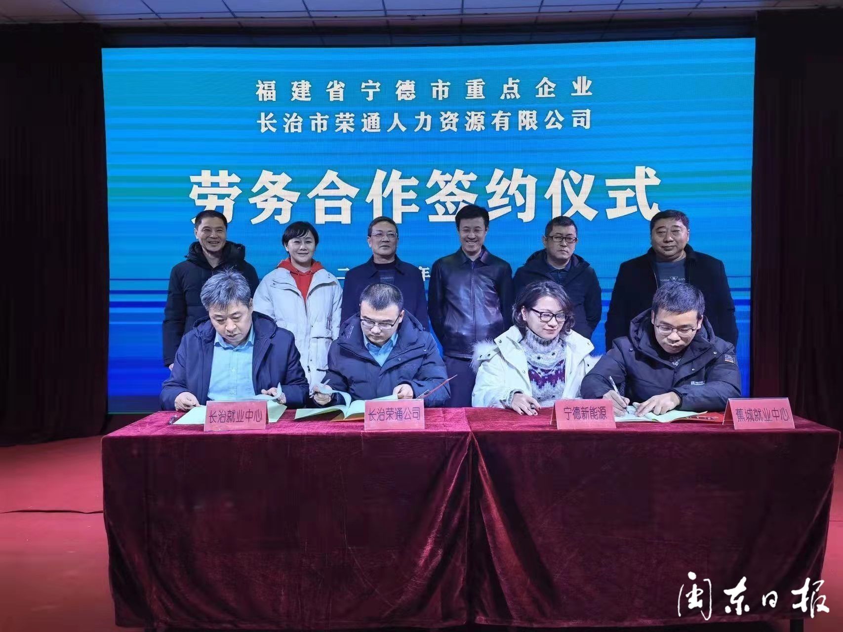 会上,宁德市人社局与长治市人社局签订了跨省劳务协作帮扶协议。未来几天企业所在地人社部门还将与平顺县,潞州区等10个县市区人社部门签订劳务协作协议,同时在长治人社部门指导下,发挥长治市人力资源协会作用(70多家人力资源机构)广泛开展线上线下宣传,充分挖掘长治市人力资源,为我市企业输送劳动力。目前企业已与当地龙头人力资源机构签订了一企一地一站劳务协议。