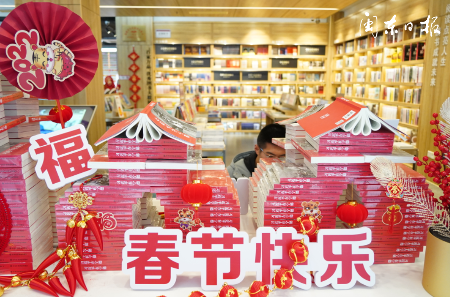 走进宁德新华书店图书城,所到之处满是“福气”。“福文化”主题图书花堆造型,“福虎生威”纸扇摆件,表达美好祝福的祈愿牌,可谓书香浸染迎新福气升。
