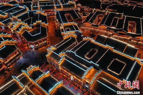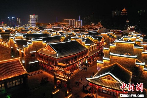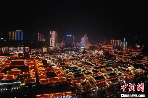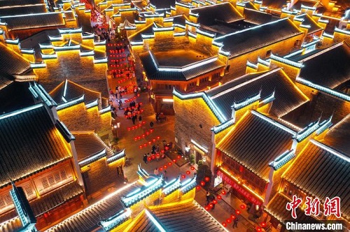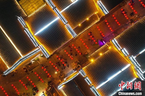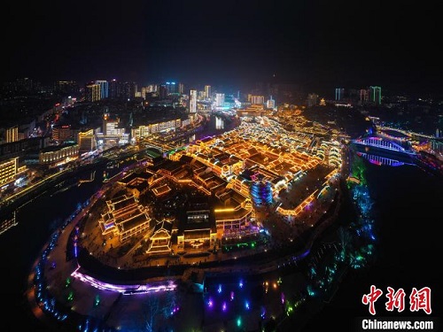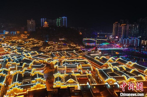 航拍贵州铜仁中南门历史文化旅游区元宵夜景。 瞿宏伦 摄
