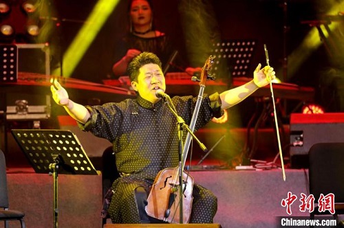 中新网兰州3月18日电 (记者 徐雪 李亚龙)在兰州城区的一处排练场地,蒙古族青年巴依勒格手握马头琴,轻闭双眼表演起呼麦,悠长浑厚的声音,似乎带着广袤草原的气息。