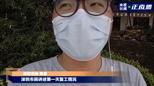 深圳市民 章俊:工作的园区今天还是比较热闹,人比较多。之前的一周大家都是居家远程办公的状态。