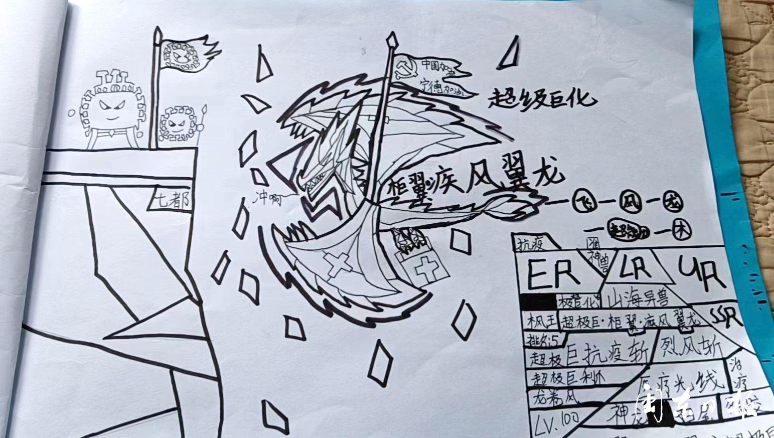 记得有一天,在上门入户的时候,一个小女生非常有礼貌的向我问候,并拿出手里的一颗棒棒糖,问我:“大白阿姨,你能不能帮我把这个带给我的弟弟,他在隔离,他叫沈~~。”看她也就四五岁的样子,已经学会了牵挂与担当,真的是个特别乖巧的孩子。我的内心特别感触,不由想到了自己的孩子,和孩子视频都是和他们交代,爸爸妈妈在打病毒,你们在家乖乖的,等我们打完病毒就回家。孩子也非常的懂事,还在家里给妈妈送上自己的《一只翼龙到七都打病毒》的画,让我特别欣慰我不是一个人在战斗,我背后有党和政府,有强大的人民群众,家里有妈妈在照顾着孩子,虽然很想念孩子,但我明白“先有国,才有家”,我们都是这个大家庭的一份子。