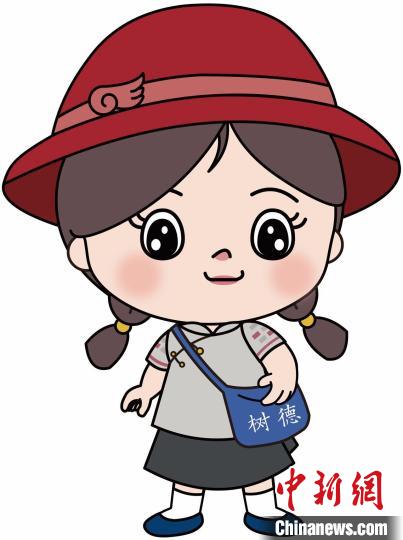 德妹名字来源于“树德里”,当然“德”之一字更有诸多美好含义。斜襟衫搭配裙子是民国女学生的典型服饰,肩部结合了中共一大会址外景青墙红砖纹饰进行创意加工;“浪花纹”小红帽用了石库门浪花门楣元素;“树德”老布包用了中共一大会址所在“树德里”里弄名。