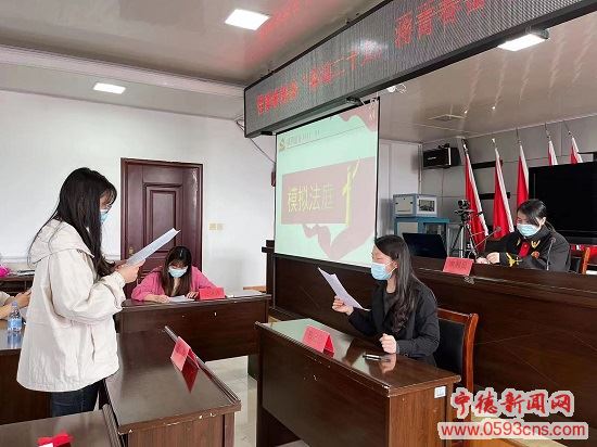 近日,福鼎法院前岐法庭干警受邀参加佳阳畲族乡人民政府开展的“喜迎二十大,将青春奋斗融入基层一线”主题活动,并联同开展模拟法庭活动,通过“零距离”感受法院审判工作及法律的威严,促使青年干部在今后的工作学习中要学法、知法、懂法、守法。(文/图 曾瑞正)