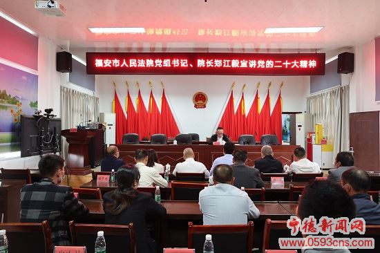 宁德新闻网11月11日电 (范婕 游张莹)为深入学习宣传贯彻党的二十大精神,11月9日,福安法院党组书记、院长郑江毅深入溪尾镇宣讲党的二十大精神,溪尾镇党委书记毛乃松主持宣讲会,溪尾镇全体班子成员、溪尾镇司法所干部、各村居支部书记参会。