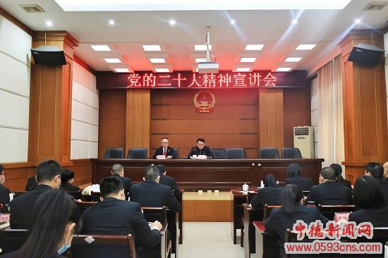 宁德新闻网12月19日电(吴进阳)12月13日,宁德中院党组成员、副院长陈国斌到福安法院宣讲党的二十大精神。福安法院党组书记、院长郑江毅主持宣讲会,全院干警参加会议。