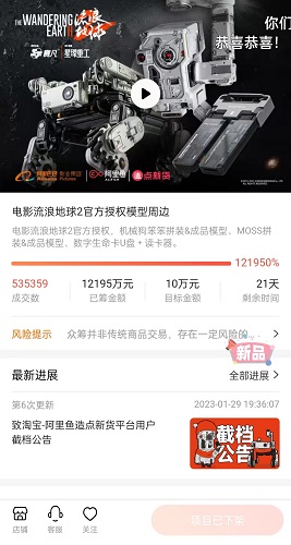 《流浪地球2》周边众筹项目售罄下架 众筹总额超1.2亿元