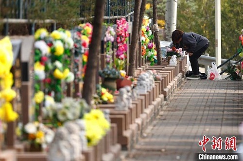 资料图:民众到陵园祭扫。(图文无关) 中新社记者 富田 摄