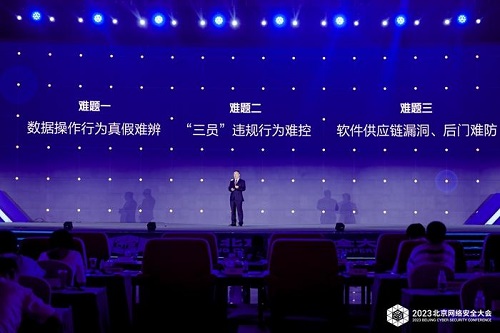 7月6日,在2023全球数字经济大会期间举办的数字安全高峰论坛暨2023BCS北京网络安全大会上,奇安信集团董事长齐向东称,数据安全出现了三大难题,数据操作行为真假难辨;“三员”即内部员工管理员、技术员和操作员的违规行为难控;软件供应链漏洞、后门难防。