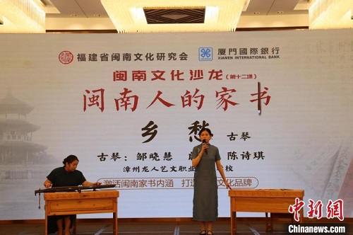 9月15日下午,“闽南人的家书”——第十二场闽南文化沙龙在福建漳州举行,图为活动现场朗诵、古琴表演《乡愁》。闽南师范大学融媒体中心 供图