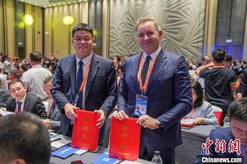 参加签约仪式的企业代表展示签约本。陈冠言摄