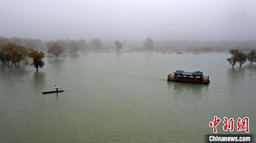 新疆沙雅县塔里木河湿地旅游景区(原始胡杨林生态文化景区)内,雨后初霁,云拥雾绕,如一幅诗情写意的山水泼墨画。柳玉柱 摄
