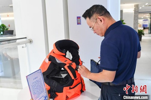 图为福信富通北斗智能救生衣吸引参观者。廖群秀 摄