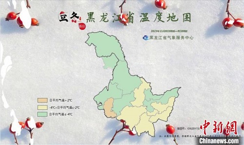 2023年“立冬首日”黑龙江省温度地图(2023年11月8日8时至9日8时)。黑龙江省气象局供图