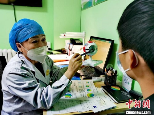图为青海省一医疗机构专家讲解眼科知识。(资料图)张添福 摄