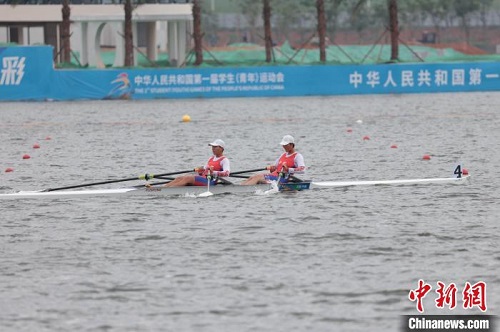 11月9日,学青会赛艇比赛女子双人双桨冠军李超然、张芳芳在比赛。何建钰摄