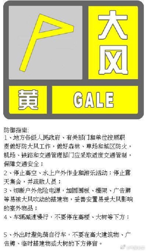 北京升级发布大风黄色预警信号