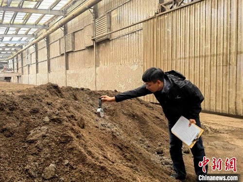 贺顺在富立来厂内查看肥料情况。 受访者 供图