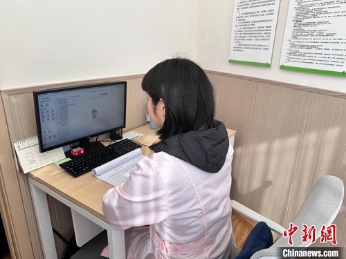 保健员何越正在查看成都市托幼机构卫生保健信息系统。尧欣雨 摄