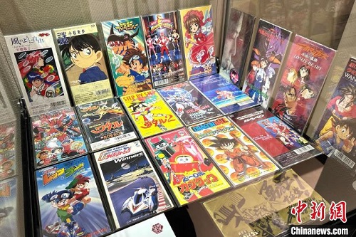 “80后”师伟收藏的动画片单曲CD在黄浦区文化馆展出。 中新网记者 王笈 摄