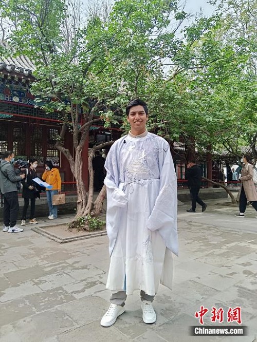 谢民的本科学历是在北京语言大学拿到的,那时候他就读了中国古典四大名著之一《红楼梦》。来到石家庄后,他了解到正定荣国府景区曾是87版电视剧《红楼梦》的取景地之一,就兴冲冲地跑去参观。谢民说那是一次非常美妙的经历,尤其是身穿汉服在海棠树下拍照,让自己体验了一次“红楼梦中人”的感觉。