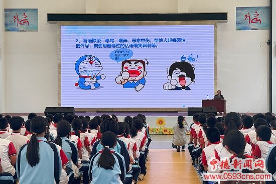 宁德新闻网9月30日电 (郑承榕)为进一步加强未成年人法治教育,筑牢校园安全防线,9月25日,屏南法院立案庭庭长兼国宝小学法治副校长甘宝丹带队走进校园,为国宝小学六年级全体师生带来一堂主题为“法律陪伴成长,杜绝校园欺凌”的“开学第一课”,以生动鲜活的形式播撒法治种子。